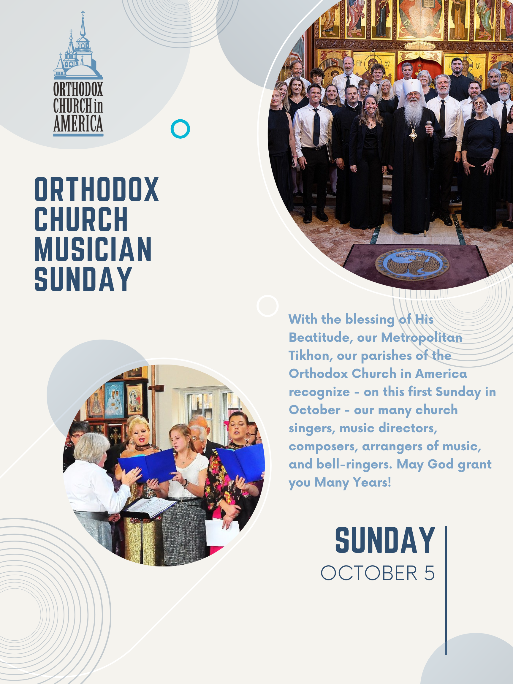 • In the days leading up to Church Musician Sunday, share the written message from His Beatitude Metropolitan Tikhon.