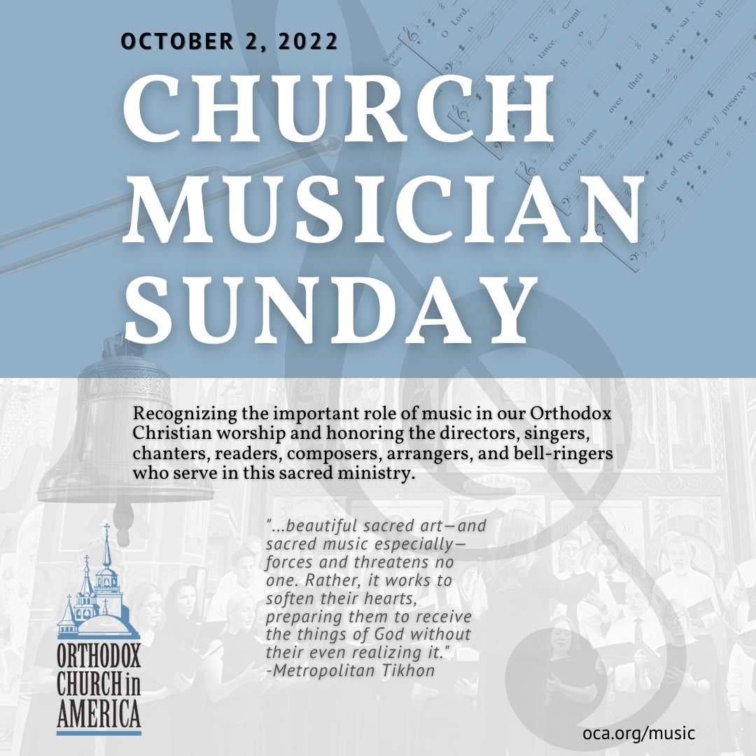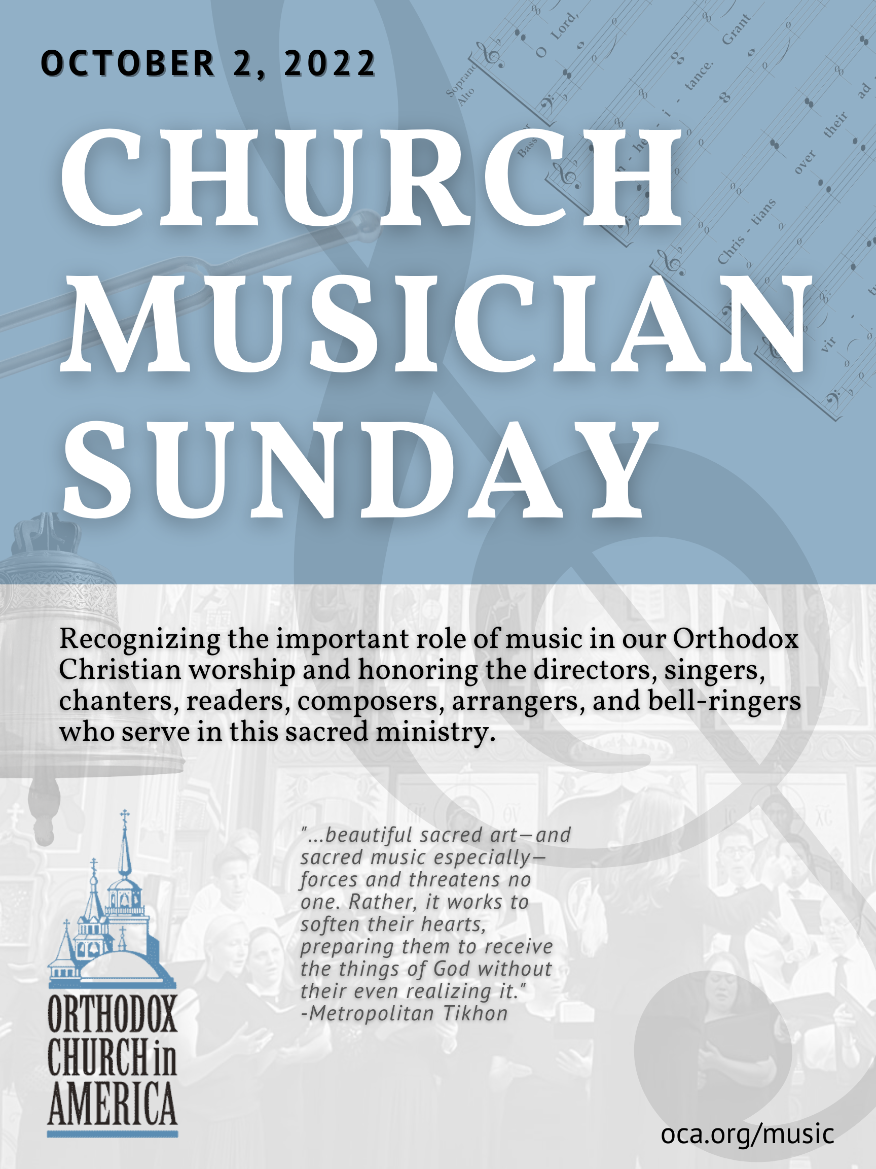 The Holy Synod of Bishops of the Orthodox Church in America has designated the Sunday following the commemoration of Saint Romanus the Melodist (October 1) as “Church Musician Sunday.” This new yearly designation, beginning on Sunday, October 2, 2022, will highlight the essential role of liturgical music in Orthodox Christian worship and the important role of church musicians in the life of the Church. Parishes are encouraged to recognize those who serve in the various roles involved in Church music: choir directors, singers, chanters, readers, composers, arrangers, and bell-ringers, through a public acknowledgment following the Divine Liturgy. Additionally, parishioners and parish leaders are strongly encouraged to consider the many essential responsibilities of those who lead the musical responses during the Divine services. To assist in this regard, thoughtful articles will be posted during the week of September 25 about the appropriate preparation, education, and remuneration of choir directors, as well as general articles about liturgical music.
